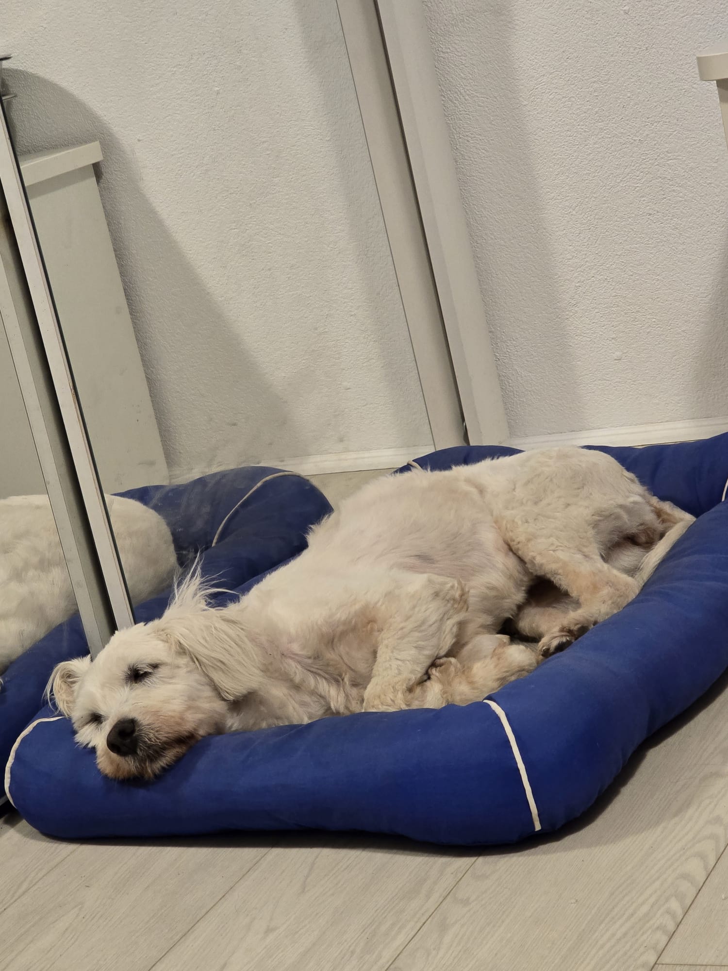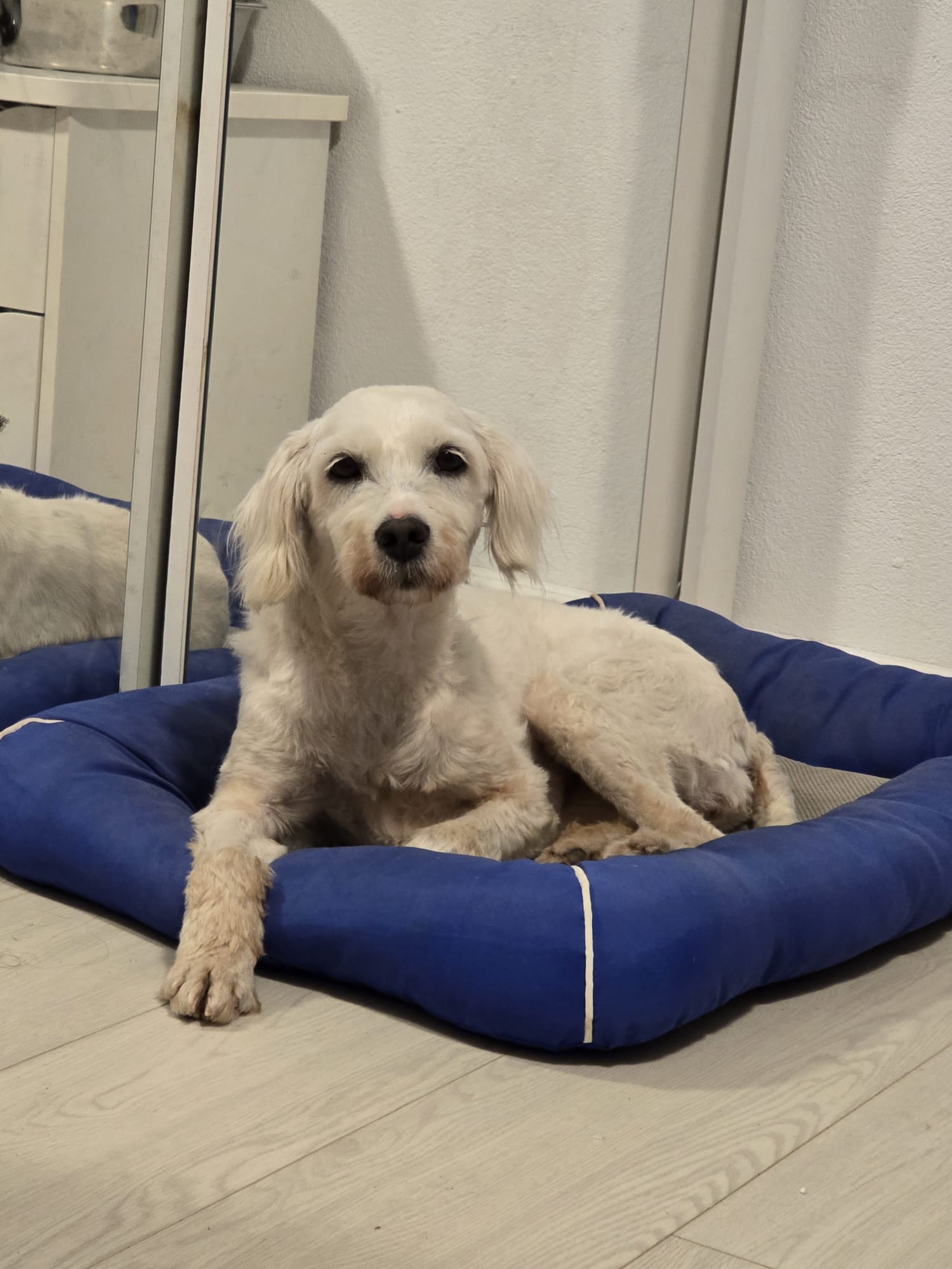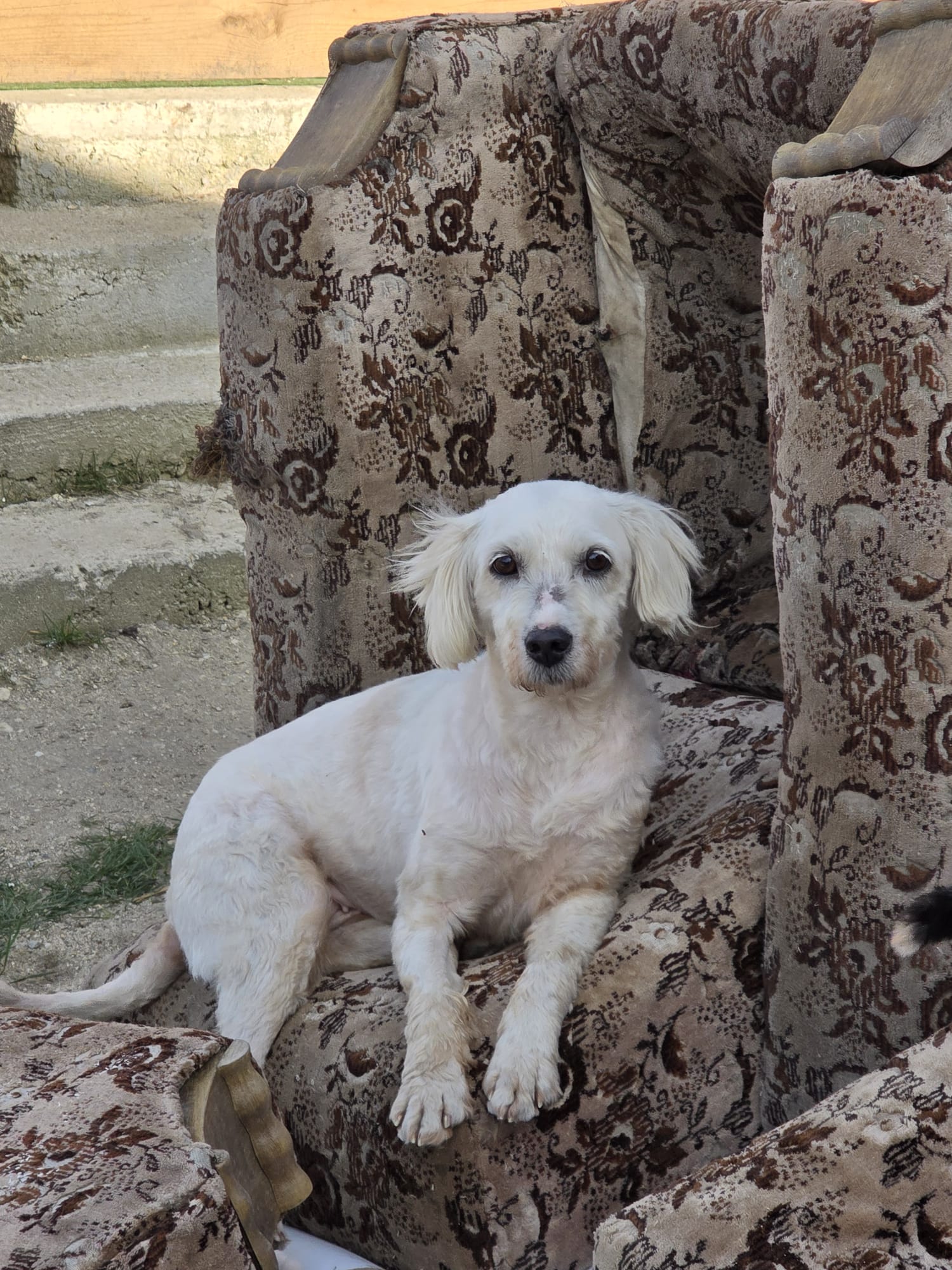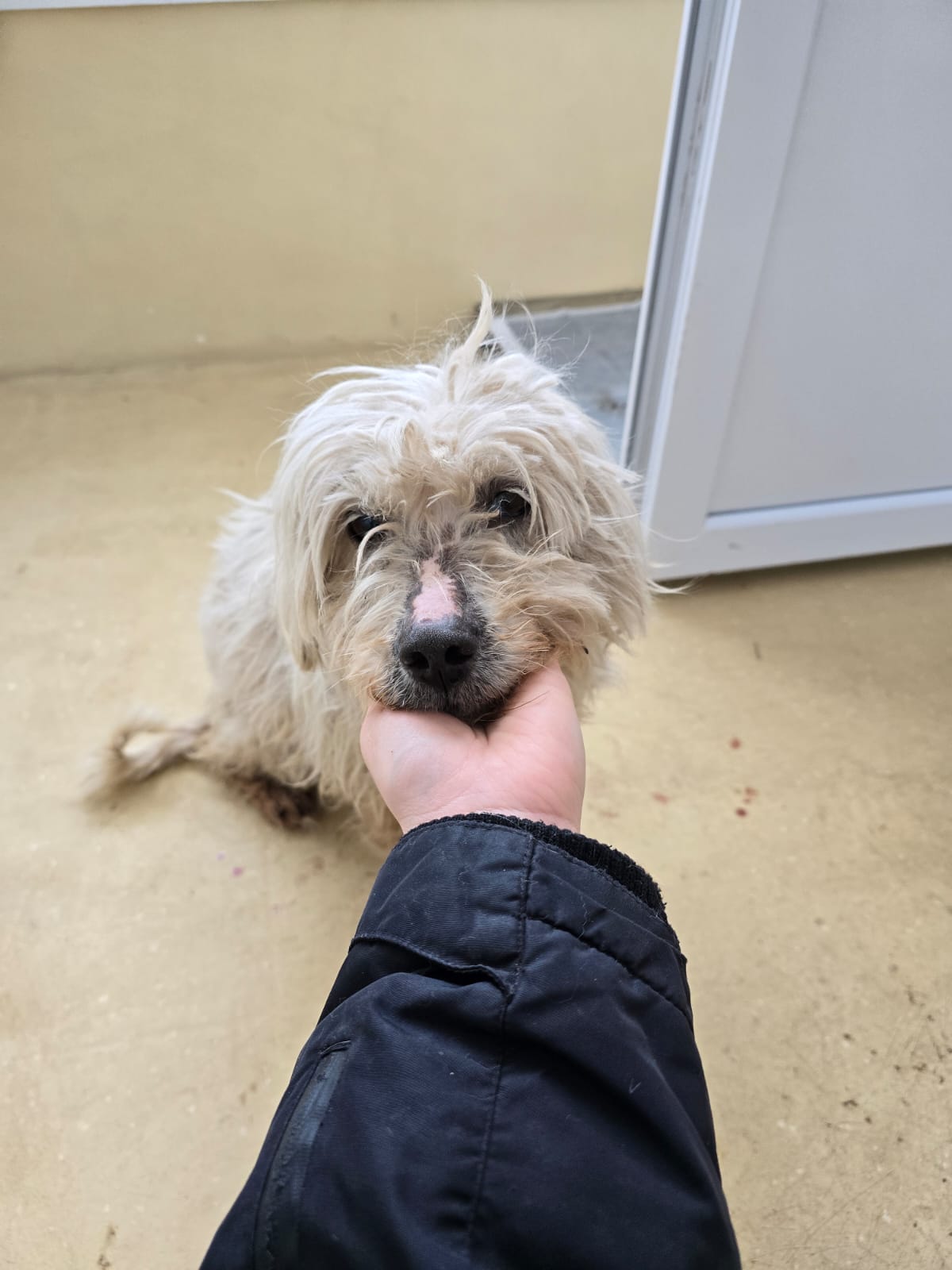 Die süße Bam Bam wurde mitten im Winter ausgesetzt. Vermutlich wurde sie mal angeschafft, weil sie niedlich ist. Doch schnell merken viele Halter, dass diese süßen kleinen weißen Plüschhunde pflegeintensiv sind. Wir sehen sehr oft kleine, weiße und völlig verwahrloste/verfilzte Hunde in unseren Kampagnen. Diese Hunde sind nicht als Hofhund geeignet. Ob Bam Bam deswegen ausgesetzt wurde, wissen wir nicht. Jedenfalls wurde auch sie völlig verfilzt und voller Parasiten aufgefunden, weswegen sie komplett geschoren werden musste. Doch das war leider noch nicht genug. Die arme Maus hatte Räude und wurde positiv auf Herzwürmer getestet.